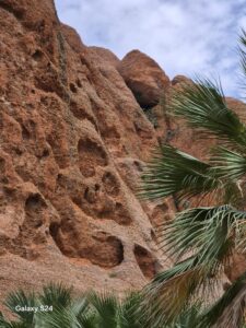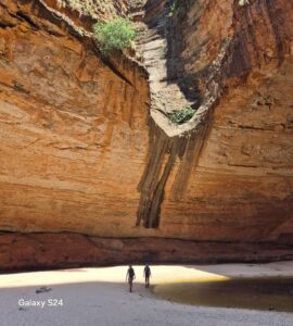 We bounced along the tracks in the 4WD and visited the Echidna Chasm with its bright red steep-sided gorge walls and palm trees, scrambling over a creek bed until we reached the chasm.